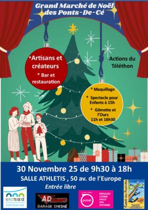 Le Comité des Festivités des Ponts-de-Cé organise le dimanche 30 novembre son grand marché de Noël à la salle Athlétis entre 9h30 et 18h. Marché en intérieur et grand parking gratuit à proximité. Vous trouverez sur place une centaine d’exposants (créateurs et artisans du bois, de la céramique, du textile, des bijoux …), des produits