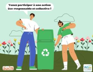“À vos poubelles !”Venez participer à une marche de la propreté le samedi 14 mars à 14h.Dans le cadre de son projet de fin d’études, Théo Clément, étudiant en BTS aménagement paysager a imaginé l’idée d’une clean walk. Avec l’aide de quatre Ambassadeurs de l’environnement en service civique à Unis Cité, le projet de Théo