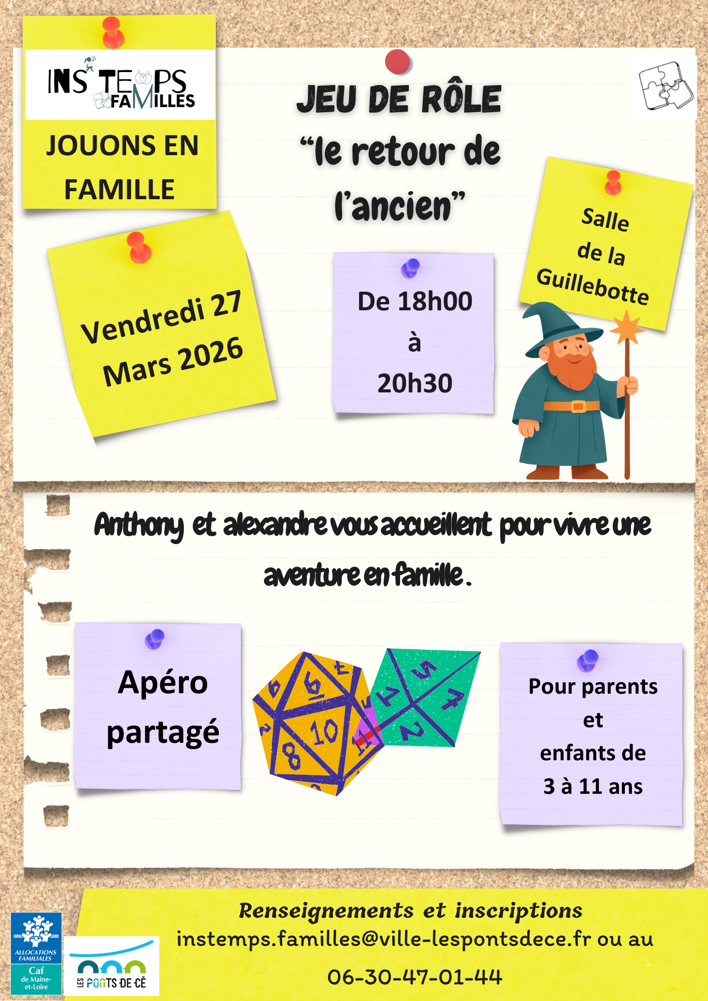 Plus d’informations : https://www.lespontsdece.fr/services-demarches/education-enfance-jeunesse/la-parentalite/instemps-familles