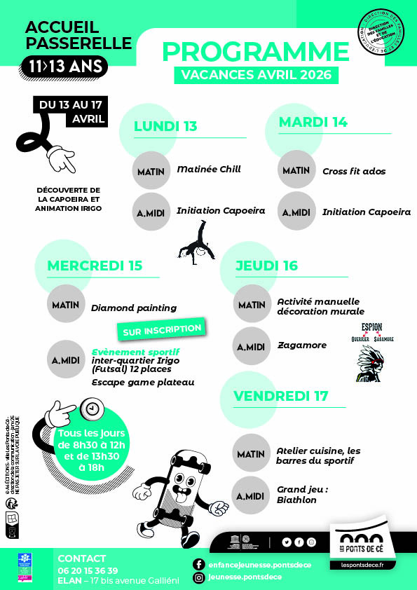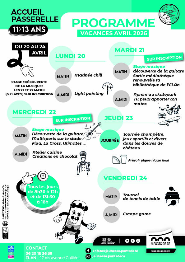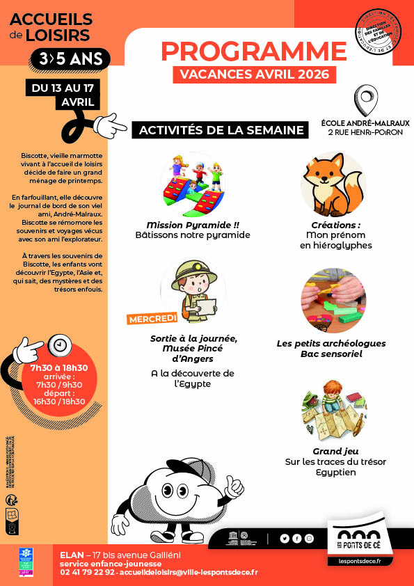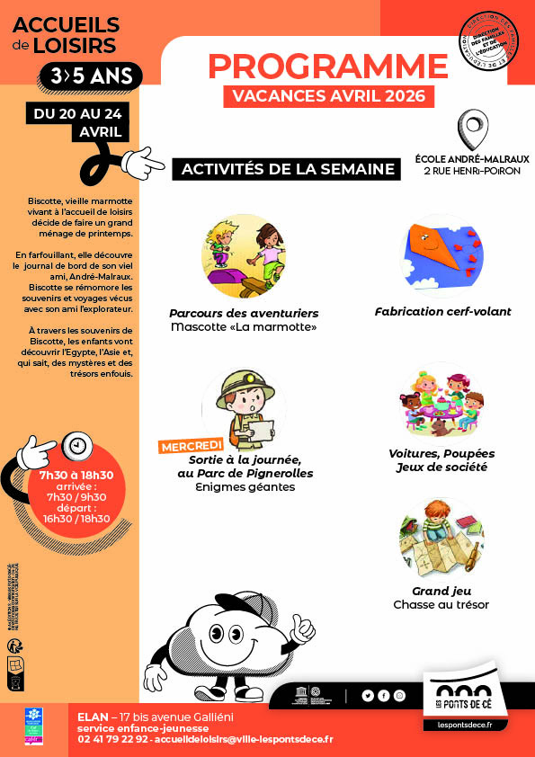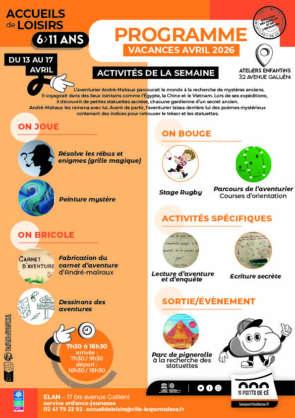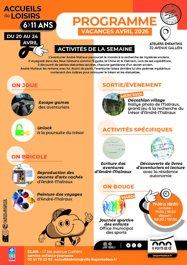 Tél : 02 41 79 22 92 – accueildeloisirs@ville-lespontsdece.fr