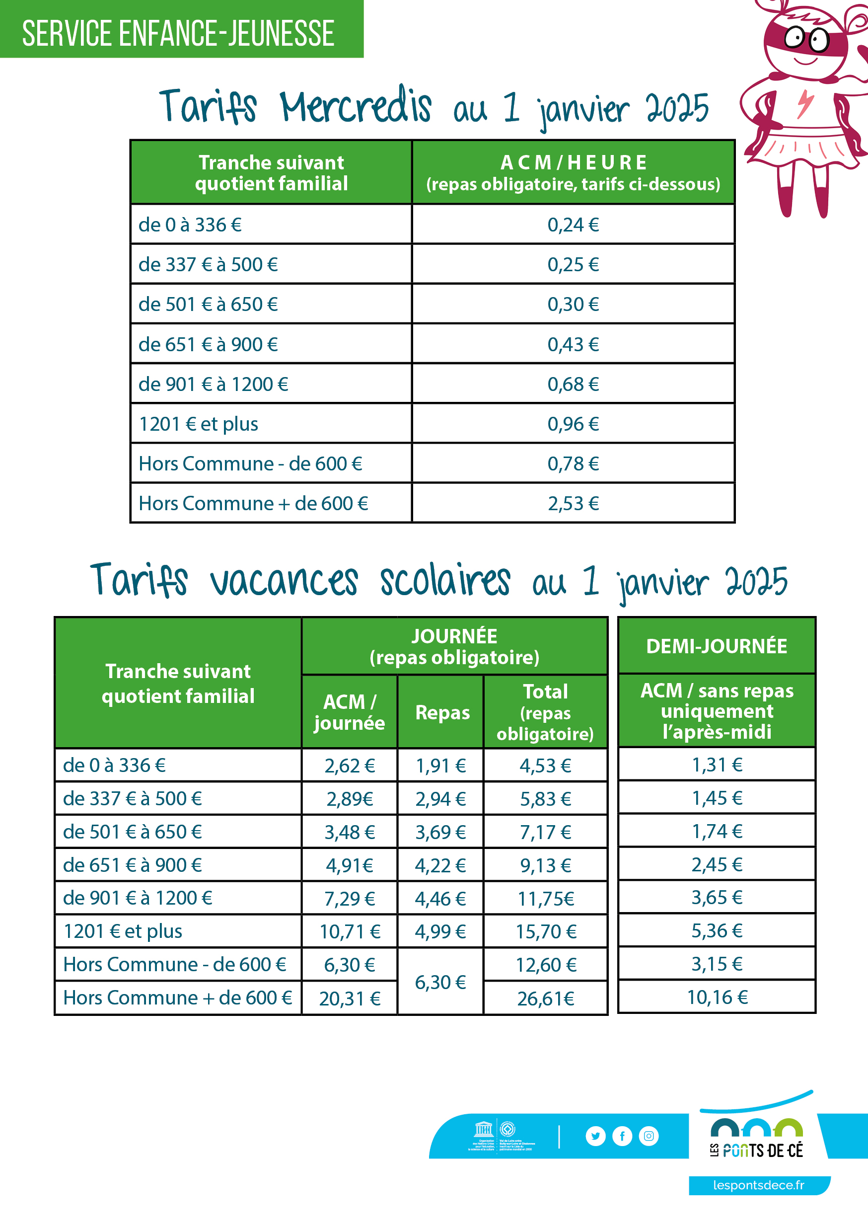 Tarifs et modalités d’inscriptions au 1 septembre 2025