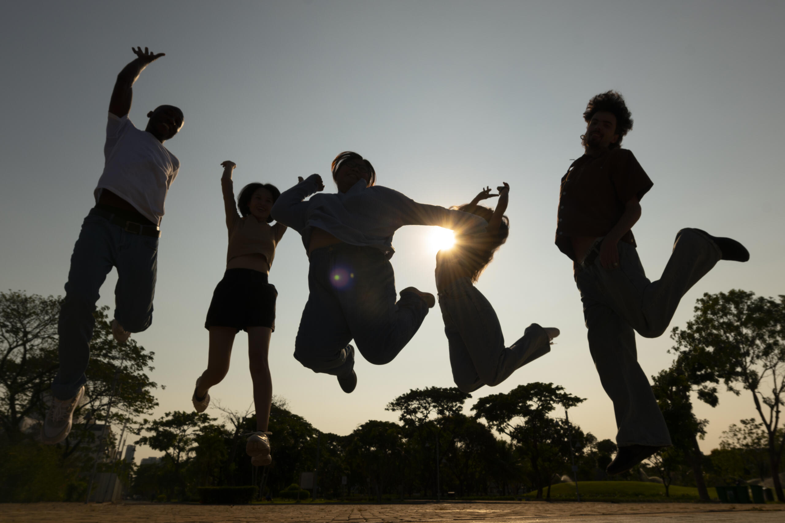 Accueil » services & démarches » Social et solidarités » Aides pour la pratique sportive ou culturelle » full-shot-friends-silhouettes-jumping-sunset
