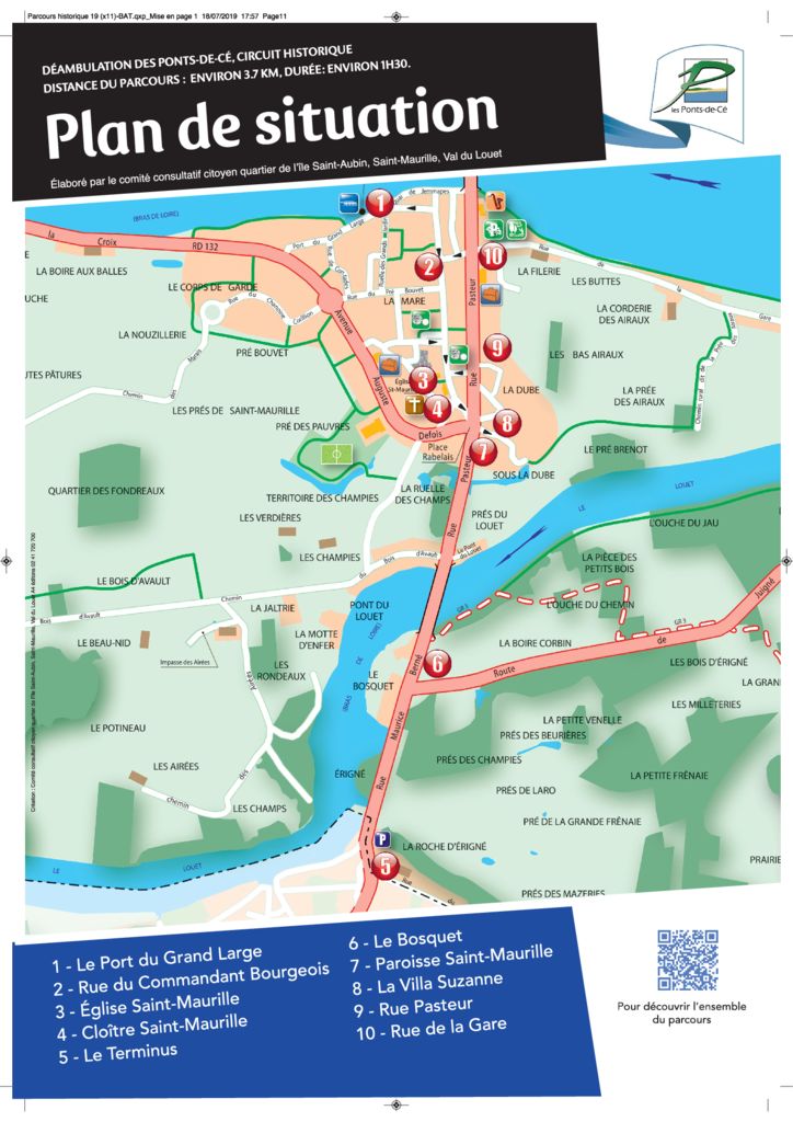Le Quartier Saint-Maurille est situé sur la rive sud de la Loire, entre le Louet et le bras principal de la Loire. L’axe principal ancien de Saint-Maurille est la rue du Commandant-Bourgeois. C’est maintenant la rue Pasteur dans l’axe du pont Dumnacus qui relie le quartier à celui de l’Île. En septembre 2019, un troisième parcours a vu le jour, toujours grâce à la contribution importante et essentielle d’un groupe d’habitants passionnés. Il vous permettra de découvrir ce troisième quartier, riche en anecdotes et événements qui pourraient vous surprendre.